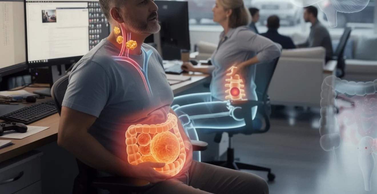 La sédentarité ne favorise pas seulement une prise de poids globale, mais surtout une obésité viscérale, c’est-à-dire un excès de graisse située autour des organes intra-abdominaux. Cette graisse profonde est métaboliquement très active : elle libère des cytokines pro-inflammatoires comme TNF-α et IL-6, ainsi que des adipokines qui perturbent la régulation de l’appétit et du stockage énergétique. Ce « brouillard inflammatoire » de bas grade entretient la résistance à l’insuline, augmente le LDL-cholestérol oxydé et aggrave la rigidité des vaisseaux. Au quotidien, vous ne ressentez peut-être qu’une légère fatigue ou un tour de taille qui s’élargit, mais sur le long terme ce terrain inflammatoire devient un puissant moteur de maladies métaboliques et de certains cancers.
